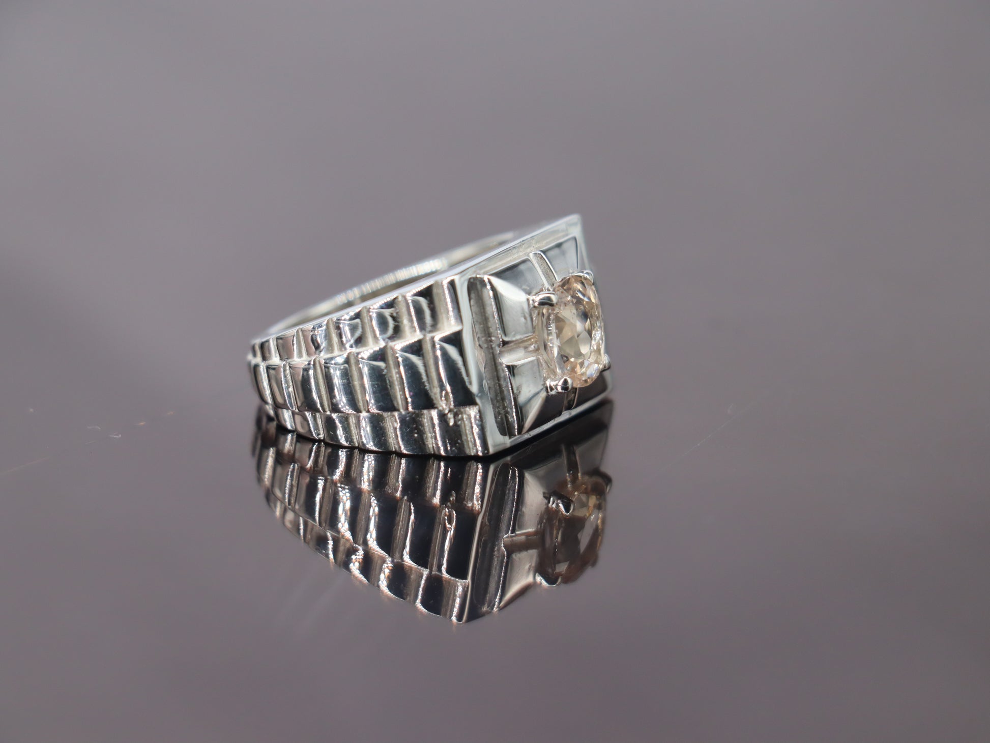 Make a bold statement with this Rolex-inspired ring, handcrafted in Sterling Silver 925 and crowned with a striking natural Topaz stone. The iconic Rolex-style band design gives it a luxurious look, while the brilliance of Topaz adds a touch of elegance and individuality.