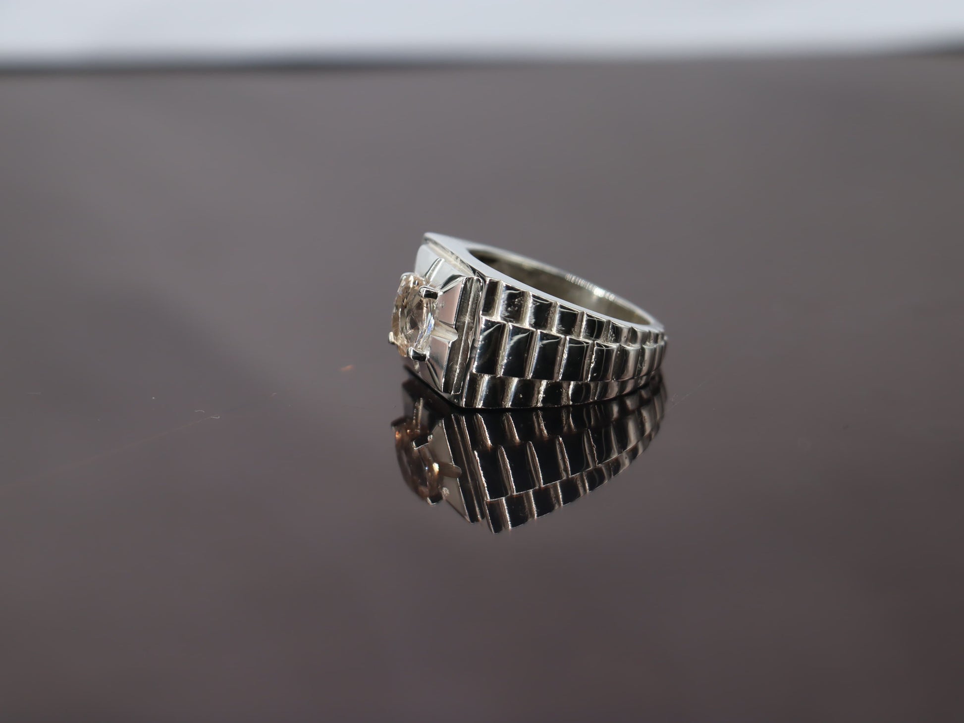 Handcrafted Rolex-Style Topaz Ring in Sterling Silver 925